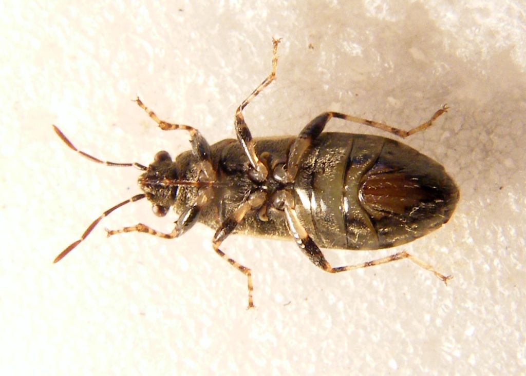 Questo, assieme ad altri 3, l'ho raccolto su ortica. Dimensioni: 6 mm. Arrivo a Heterogaster e presumo - non avendo una tabella per identificare le specie di questo genere - che si tratti di Heterogaster urticae (Fabricius 1775) ma una conferma è gradita. Grazie a tutti.