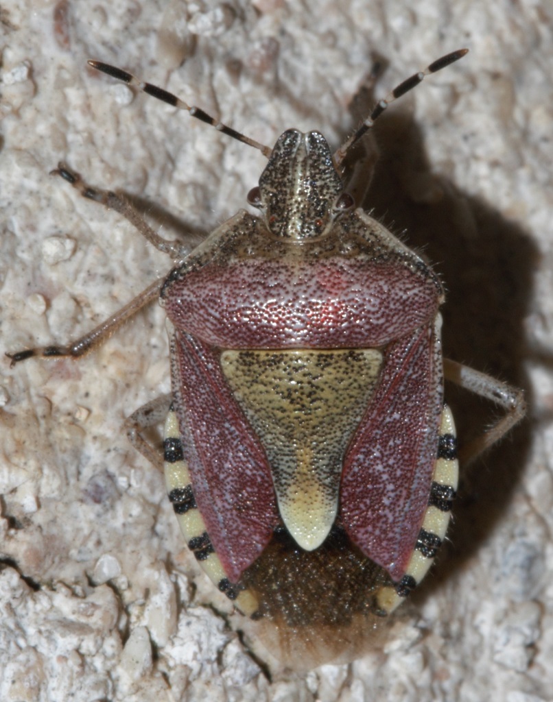 Lo avrei determinato come Carpocoris pudicus ma le antenne bianche ad intermittenza mi mettono in dubbio.