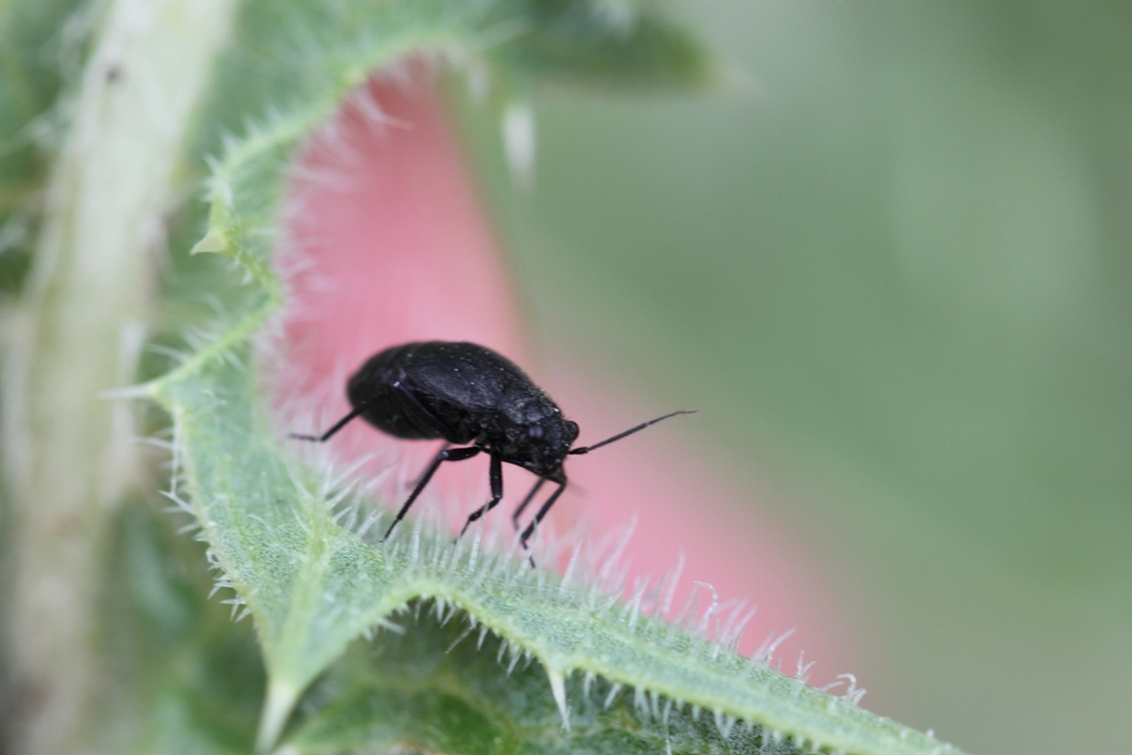 Molto veloce. Fugge immediatamente, girando sulla superficie fogliare inferiore o facendosi cadere. Su cardo. Non l'ho visto volare. Ho provato a cercare in rete e mi sembra che possa essere un Orthocephalus. Onnivoro e/o fitofago? :D
