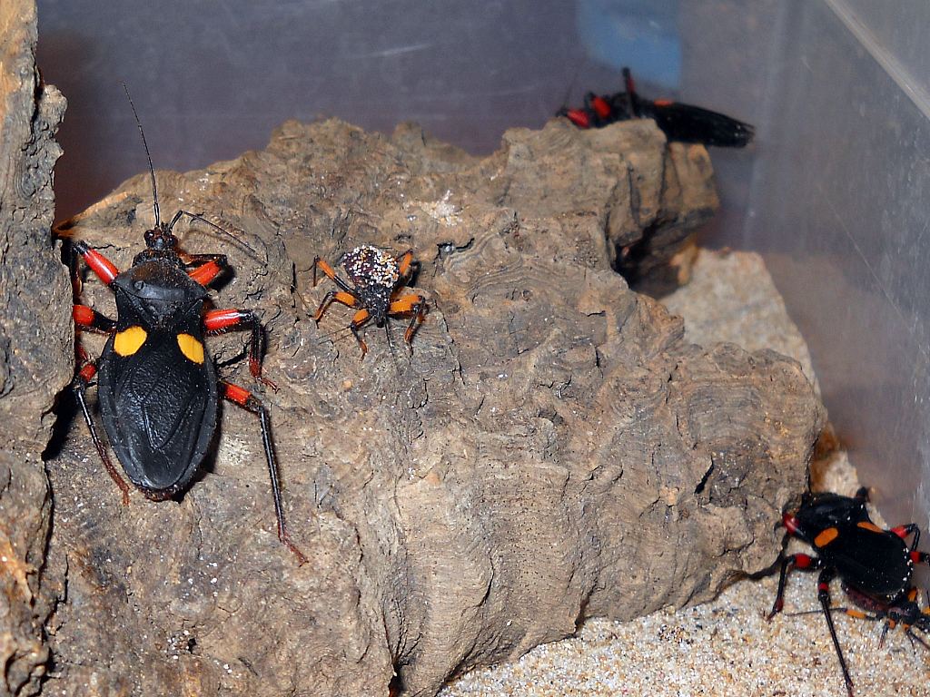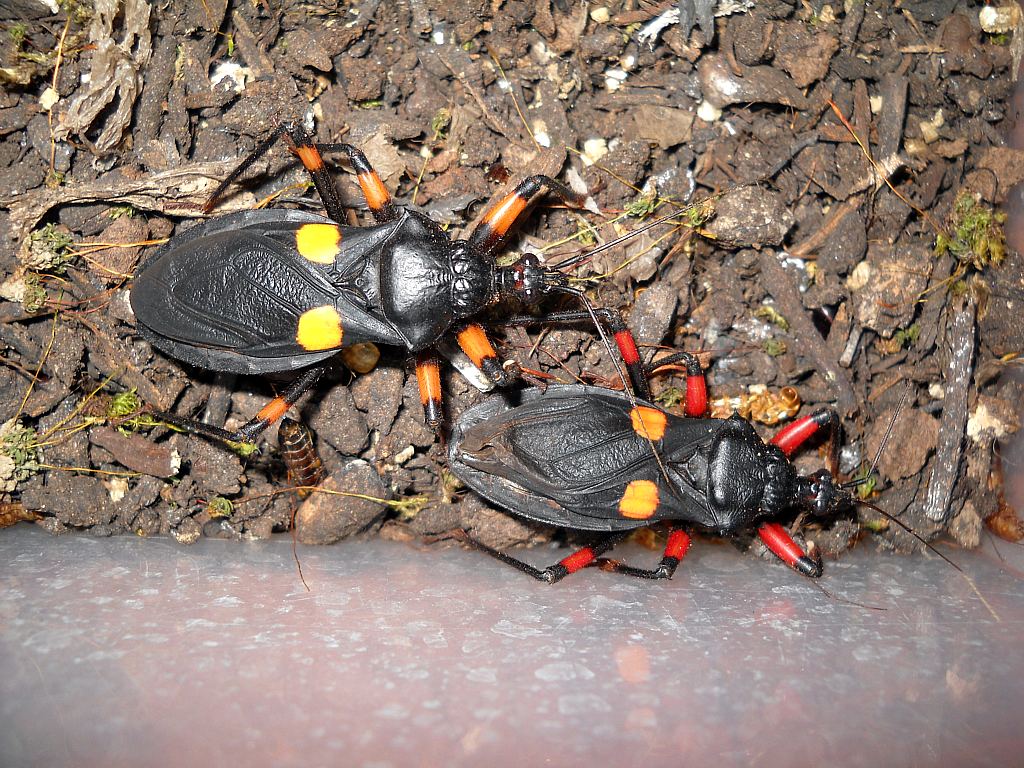 Naturalmente, possedendo in collezione un numero limitato di esemplari ricevuti dall'Africa (Congo Brazzaville, Sierra Leone, Tanzania, Kenia, Eritrea ecc., sarei interessato a visionare serie di questi reduvidi di allevamento. Non mi interessano esemplari vivi, mi basta averne qualcuno da morto quando defungono al termine del loro ciclo vitale in terrario. Se qualche allevatore, al posto di buttare i cadaverini me ne fornisse qualcuno (io sarò a Entomodena il sabato), si potrebbe anche provare a studiare i caratteri che si mantengono più stabili nel succedersi delle generazioni.