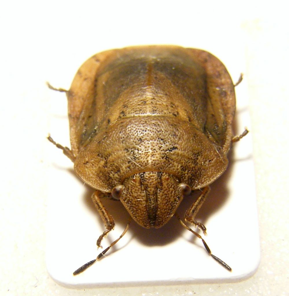 Questo Eurygaster mi lascia dubbioso: lunghezza mm 9. Il tylus è libero, anche se di pochissimo, quindi ho 3 possibilità: E. integriceps (ma le dimensioni del corpo sarebbero maggiori), E. maura (ma il bordo laterale del torace sarebbe dritto) e E. testudinaria (ma il bordo laterale del torace, anche in questo caso, sarebbe dritto). Sarà che il tylus va considerato racchiuso dalle guance? E. dilaticollis? Grazie a tutti.