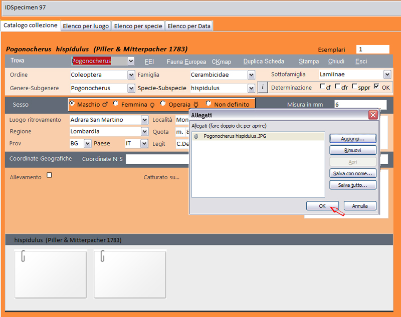 e sicuramente amplierei i campi di inserimento dati di raccolta per gli esemplari presi non solo in Italia ma in qualunque parte del mondo.