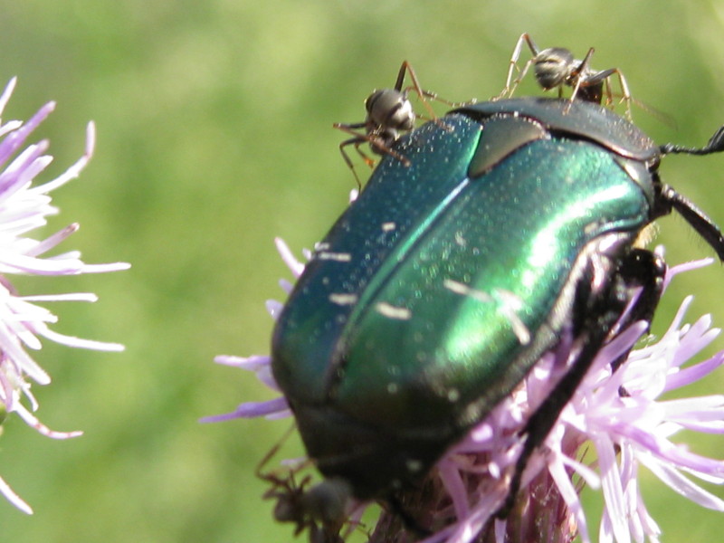 Su Centaurea cyanus. Penso a Cetonia aurata - Scarabeidae che sta subendo un attacco da parte di formiche...