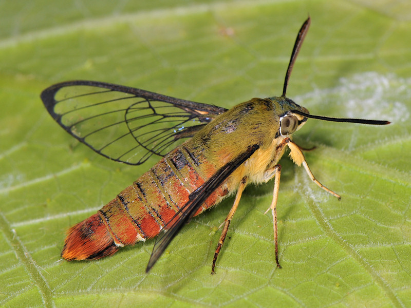 Entrambe le Cephonodes sono C. tamsi. Quella rossastra è un maschio e quindi è in accordo con la descrizione generale della specie. Quella verdastra è una femmina, che non ho mai visto prima d'ora, e sembrerebbe che la specie è in qualche modo sessualmente dimorfica come quantità di rosso. C. tamsi era stata considerata potenzialmente estinta ma c'erano state un certo numero di segnalazioni. Queste comunque si riferivano alle più piccole isole delle Seychelles, quindi può essere sparita da Mahé. Le tue segnalazioni sono le prime che io possiedo di sfingidi a La Digue