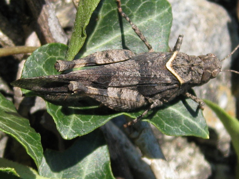 Su Hedera helix, questo soggetto credo possa attribuirsi a Oedipoda caerulescens f. marginata - Acrididae.