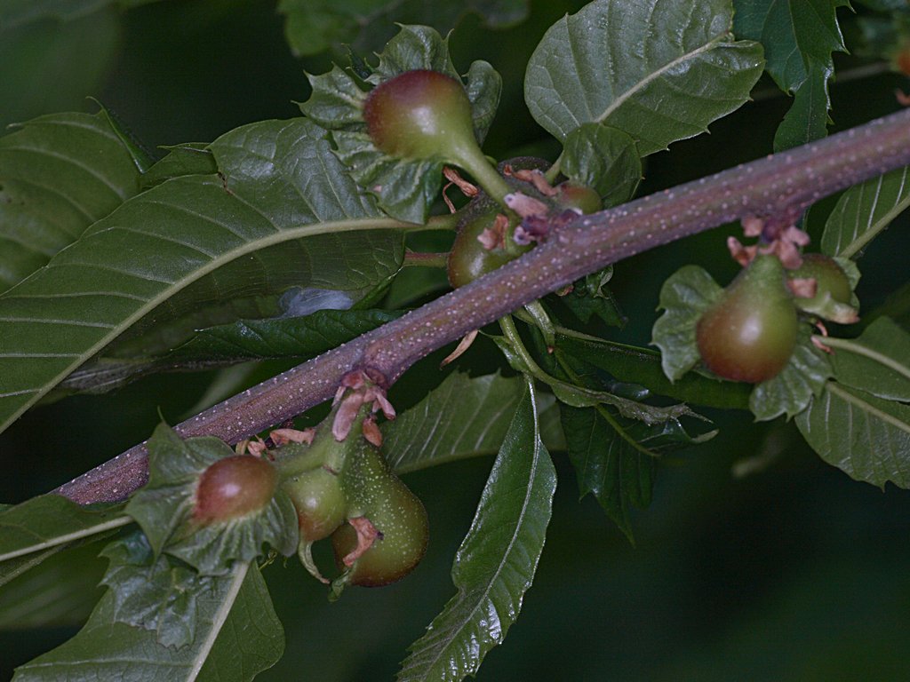 Dryocosmus kuriphilus Hymenoptera Cynipidae, un insetto importato con il commercio delle castagne dall'oriente, è diventato un vero flagello negli ultimi anni per i nostri castagneti in quanto non solo azzera la produzione ma attaccando e alterando praticamente tutte le foglie impedisce una corretta e adeguata fotosintesi alla pianta, spesso se l'infestazione perdura per diversi anni il castagno muore