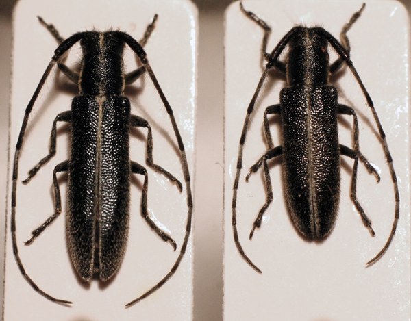 Vedo che questi esemplari hanno l'apice elitrale che mi sembra arrotondato (se questo può ancora essere un buon carattere), quindi non potrebbero essere Agapanthia suturalis (Fabricius, 1787).