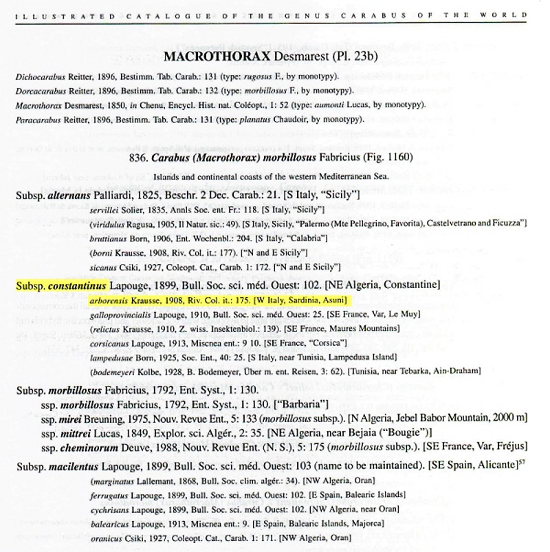 nella mia collezione mantengo arborensis per il suo valore storico, ma qui sul forum dobbiamo classificare le bestiole in base ai criteri che ci siamo posti...per cui Carabus (Macrothorax) morbillosus constantinus Lapouge, 1899.