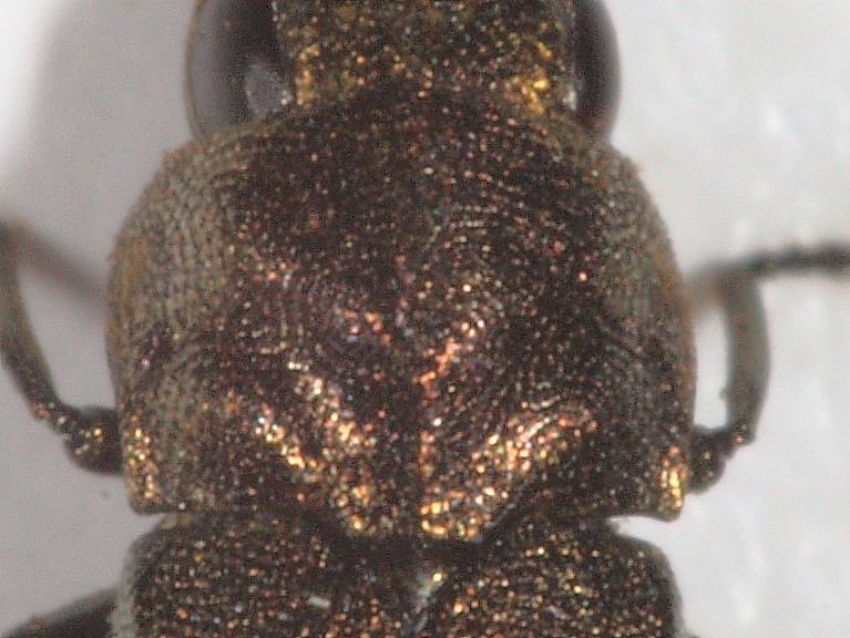 Potresti fare un particolare del protorace e dell'ultimo tergite/apice elitrale? (ora il tergite è in ombra e fuori fuoco in entrambi gli esemplari)