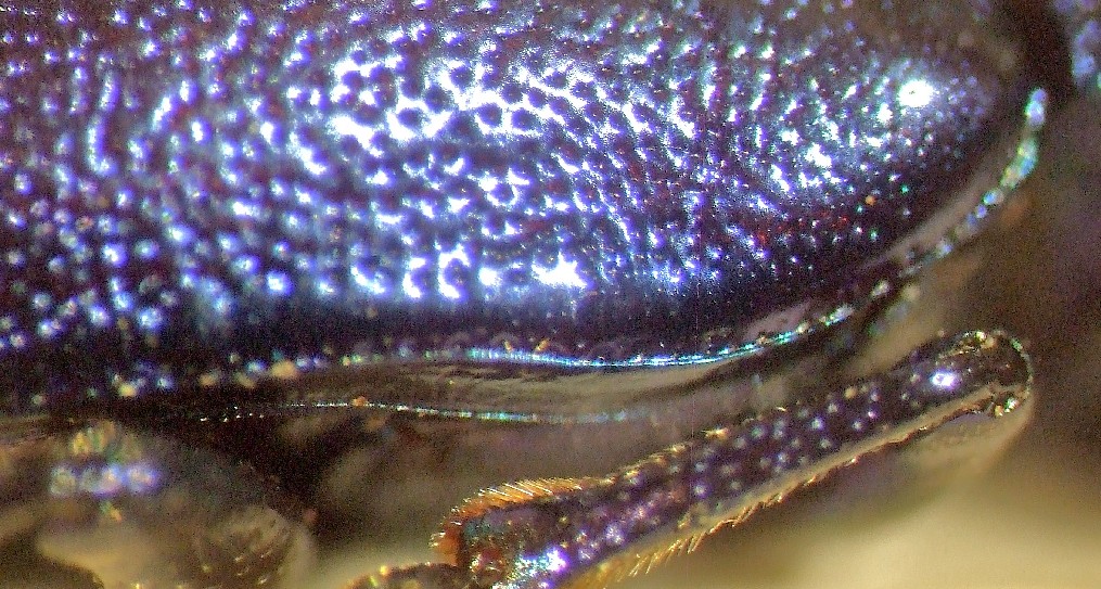 se guardi l'esemplare lateralmente, vedrai che l'elitra, lungo il bordo, ha una specie di carena e poi continua con una porzione che guarda ventralmente: quella porzione di elitra si chiama epipleura, ed è facilmente identificabile.