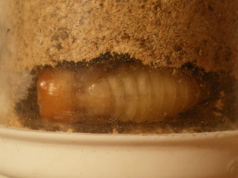 Questa volta sono stato bravo, e delle sei larve prese, tutte e sei stanno arrivando a termine, anche se ci sono diverse differenze nello sfarfallamento: la prima larva si è impupata il 26-VI-2011 e questa mattina ho ottenuto l'adulto, ma già il 07-VII avevo già un altro maschietto. C'è addirittura una larva che deve ancora impuparsi anche se si è fatta la celletta. :no1:
