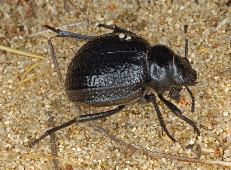 Questa Pimelia è fotografata nella stessa spiaggia dei Thorectus (sardous e intermedius) postati qualche giorno fa: "Li Cuncheddi", comune di Olbia il 20.09.09. Malgrado sia zona di Pimelia payraudi, la costolatura più "decisa" mi fa pensare alla Pimelia angusticollis punctatorugosa.