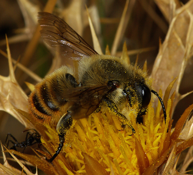 Sono tutti scatti fatti nel giro di una trentina di minuti in uno spazio di 2-3 metri. Delle varie piante presenti posso confermarti che tutti gli esemplari frequentavano solo questi cardi del genere Carlina. Purtroppo stavano sempre con la testa tuffata nel polline e questo non aiuta certo.