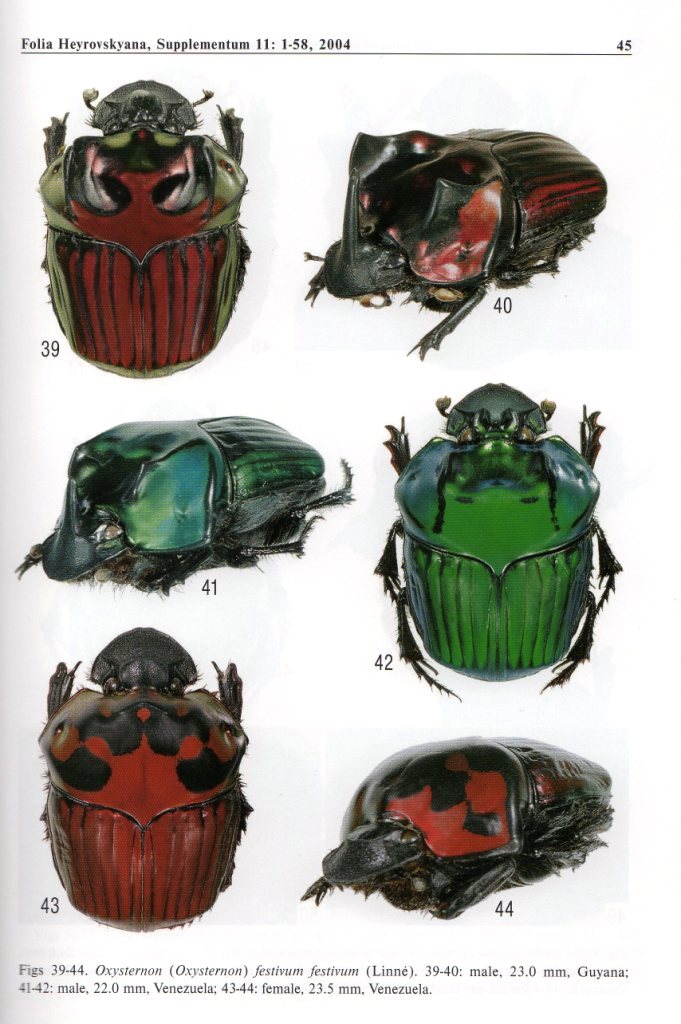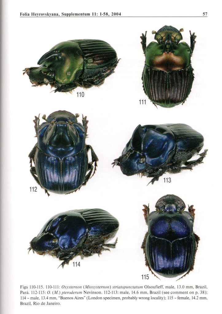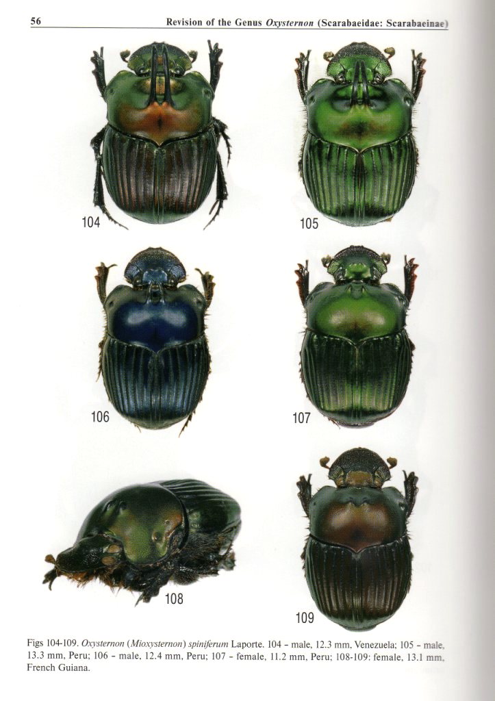 Riguardo agli Oxysternon (molto apprezzati per la colorazione, ma poco studiati se non per alcune specie comuni), il testo di cui Jan ha proposto le tavole è anch'esso utilissimo per fare ordine.