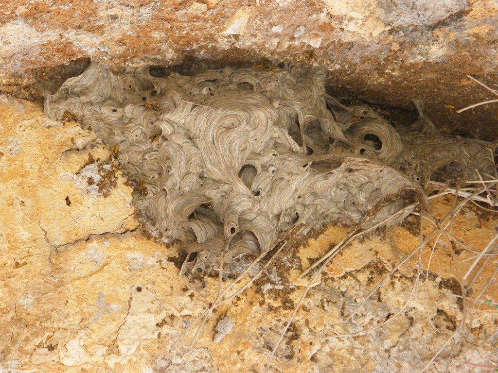 f.izzillo ha scritto: Grazie Pietro  La prima foto in alto è operaia di Vespula vulgaris (Linnaeus,1758) e la foto in basso è l'esubero di carta attorno al nido come spesso si manifesta quando lo spazio disponibile per la naturale crescita scarseggia. Le operaie del genere Vesp ula sono delle ottime scavatrici, e in terreni adatti allargano la cavità man mano che il nido aumenta di dimensione. In questo caso non èra possibile per la base rocciosa. Di riflesso allargano anche verso l'esterno, ma spesso la porzione sporgente non contiene favi, e nasce soltanto dal irrefrenabile istinto costruttivo delle operaie. Il nido dal colore ocra chiaro, si distingue indubbiamente da quello dalla congenere Vespula germanica che costruisce sempre nidi di colore grigio.
