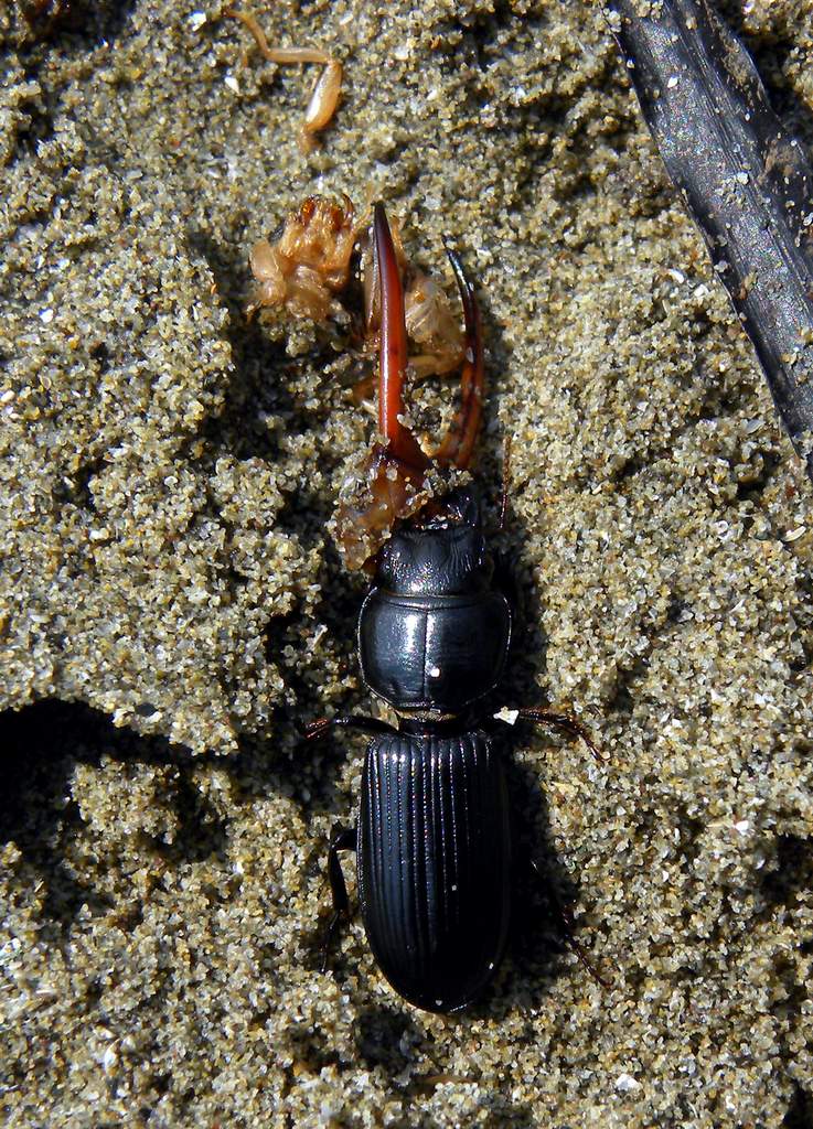 01 Normalmente si osserva Parallelomorphus laevigatus in tane superficiali da lui scavate sulla sabbia sotto le alghe e i corpi morti spiaggiati lungo la battigia;