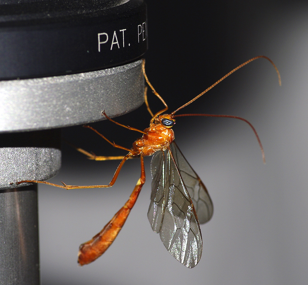 Questa sera ho voluto provare una caccia al lume "comoda"  , nel senso che la sto facendo sul terrazzo di casa. Ho attaccato un lenzuolo all'esterno di una grande finestra e ho posizionato il cavalletto della macchina fotografica allo scopo di sorreggere una lampada a luce nera. Sino ad ora ho trovato queste cose (faccio saltuari controlli uscendo sul terrazzo ogni mezz'oretta circa): piccolo curculionide: 8 mm senza rostro 5 mm. Un po' di imenotteri 24 mm. 10 mm. 7 mm. 6 mm. 5 mm. 4 mm.