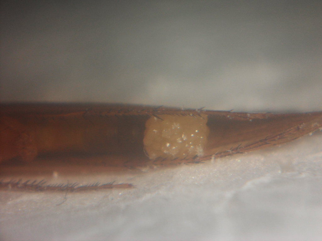 Questo esemplare dopo essere stato ucciso con etere ha lasciato dall'addome un ammasso, si tratta di uova?