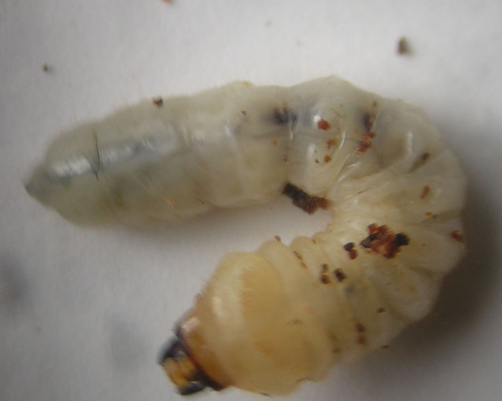 Perdonatemi per le foto bruttissime :oops: ... con questa larva in movimento non sono riuscito a fare di meglio (infatti non so come faccia Giacomo a fare quelle belle foto a fuoco :roll: ). Sembrerebbe un Lamiino, non possiede zampe visibili, ma da quello che visto neppure gli urogonfi (ma potrebbero essere nascosti dietro la piega del penultimo urite). Inutile dirvi che la fretta mi ha giocato un brutto scherzo, e che ho gia rinserito le larve in appositi fori (rigorosamente sotto corteccia) fatti con il trapano :( . Potrebbe essere Acanthocinus sp.? (sicuramente non sono di Rhagium)
