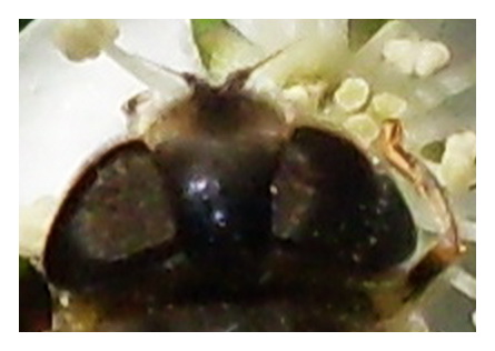 2.Eye hairs unevenly distributed, each eye with two distinct, dorso-ventral bands (coalescing dorsally) of longer,