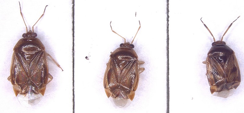 Fai bene a negarlo: D. flavilinea è una specie parecchio più grande, quasi il doppio. Il carattere distintivo di questa, nell'ambito della nostra fauna, sono le dimensioni ridotte in abbinamento allo scutello privo di punteggiatura: Deraeocoris (Knightocapsus) lutescens (Schilling, 1836)