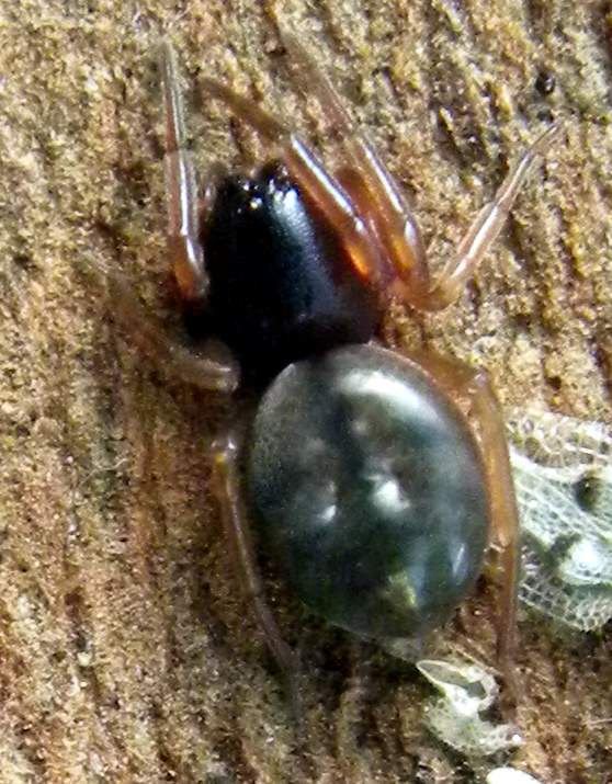 Come giustamente ha detto Luigi non si tratta di Theridiidae, tantomeno del tipo Steatoda (postura, lunghezza delle zampe anteriori, forma del prosoma, ecc. ecc.), ma neanche di Clubionidae (gli occhi mediani posteriori sono tra loro distanziati ma non tanto da far pensare ad un membro di questo gruppo).