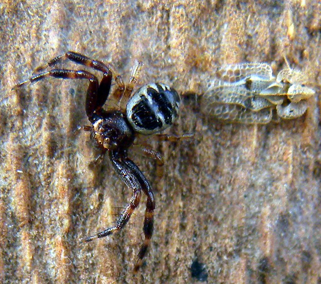 Dalle dimensioni del rincote Corythucha ciliata, vicino al quale è stato fotografato sotto corteccia di platano, questo ragno è lungo circa 4 millimetri.