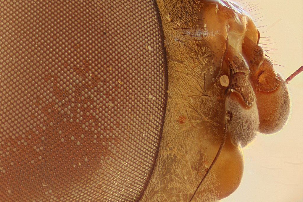 Il problema delle trasparenze a questi ingrandimenti è fisiologico .... dipende dalla piccolissima profonfità di campo .... e se guardi i singoli scatti vedrai che quando gli ommatidi sono a fuoco l'arista è completamente scomparsa .... e vice versa.