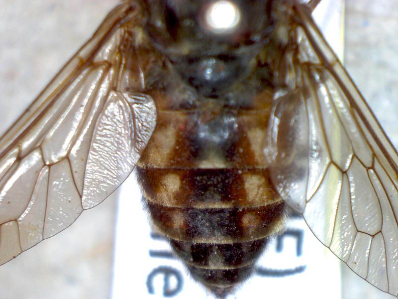 Le nuove immagini sono un forte progresso, in particolare si nota l'assenza di ocelli che è un carattere diagnostico significativo. Occorrerebbe però riuscire a vedere bene le antenne (o quanto resta delle antenne; mi sembra che l'esemplare sia un po' malconcio), verificare la presenza o meno di speroni sulle tibie posteriori, verificare pubescenza o meno degli occhi, che mi sembra assente, e la pubescenza o meno alla base dell'ala. Al momento non si può neanche essere sicuri del genere Tabanus.