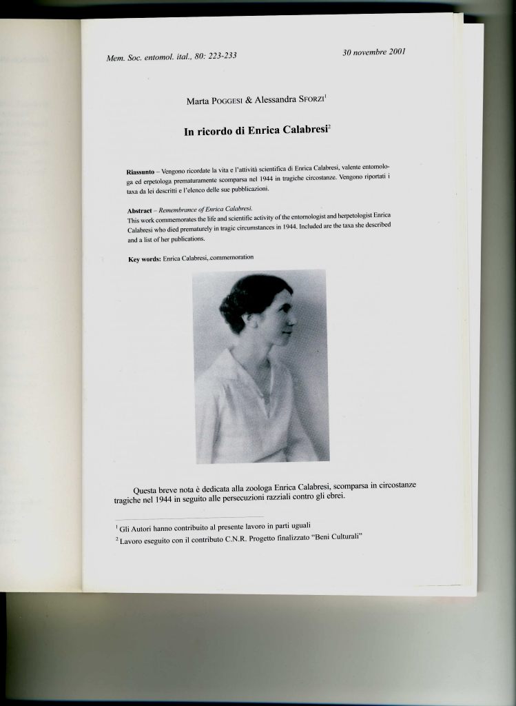 Se non sbaglio, a Enrica Calabresi è dedicata la sezione di Entomologia del Museo di Storia Naturale di Firenze.