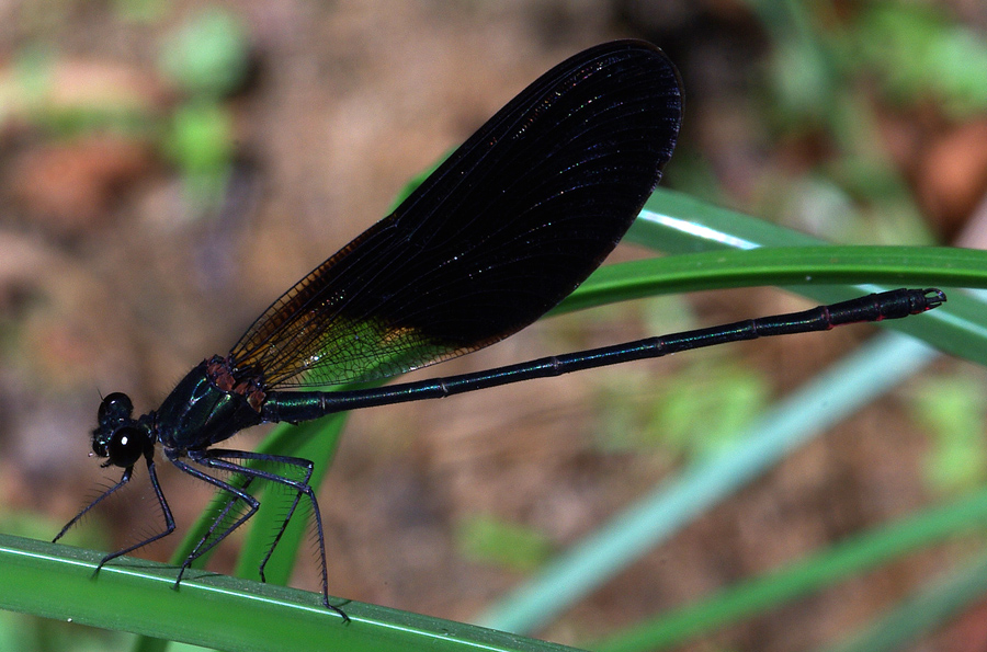 In questo esemplare non è ben visibile la macchia dei tre ultimi segmenti addominali, che per quello che si vede mi sembra più rosa chiaro che rosso vivo. Anche le zampe sembrano totalmente nere, senza presenza di rosso, per cui propenderei per Calopteryx virgo meridionalis. Ci ho preso? :)
