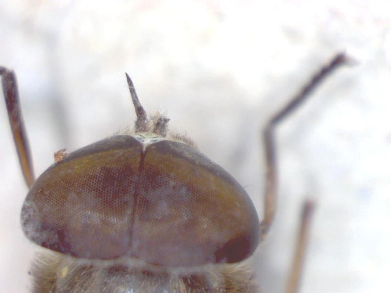 Se il (o la?) basicosta è pubescente non può essere una Philipomyia. A questo punto diventa importante sapere com'è l'antenna; mi sembra che quella sinistra sia ancora abbstanza integra. Nei Tabanidae il terzo articolo è corredato di un flagello composto a sua volta da altri piccoli segmenti; in questo caso l'alternativa dovrebbe essere tra tre o quattro oltre al terzo articolo stesso. Il terzo articolo potrebbe presentare un dente (si vede bene nel mio post) che a sua volta è un carattere diagnostico significativo.