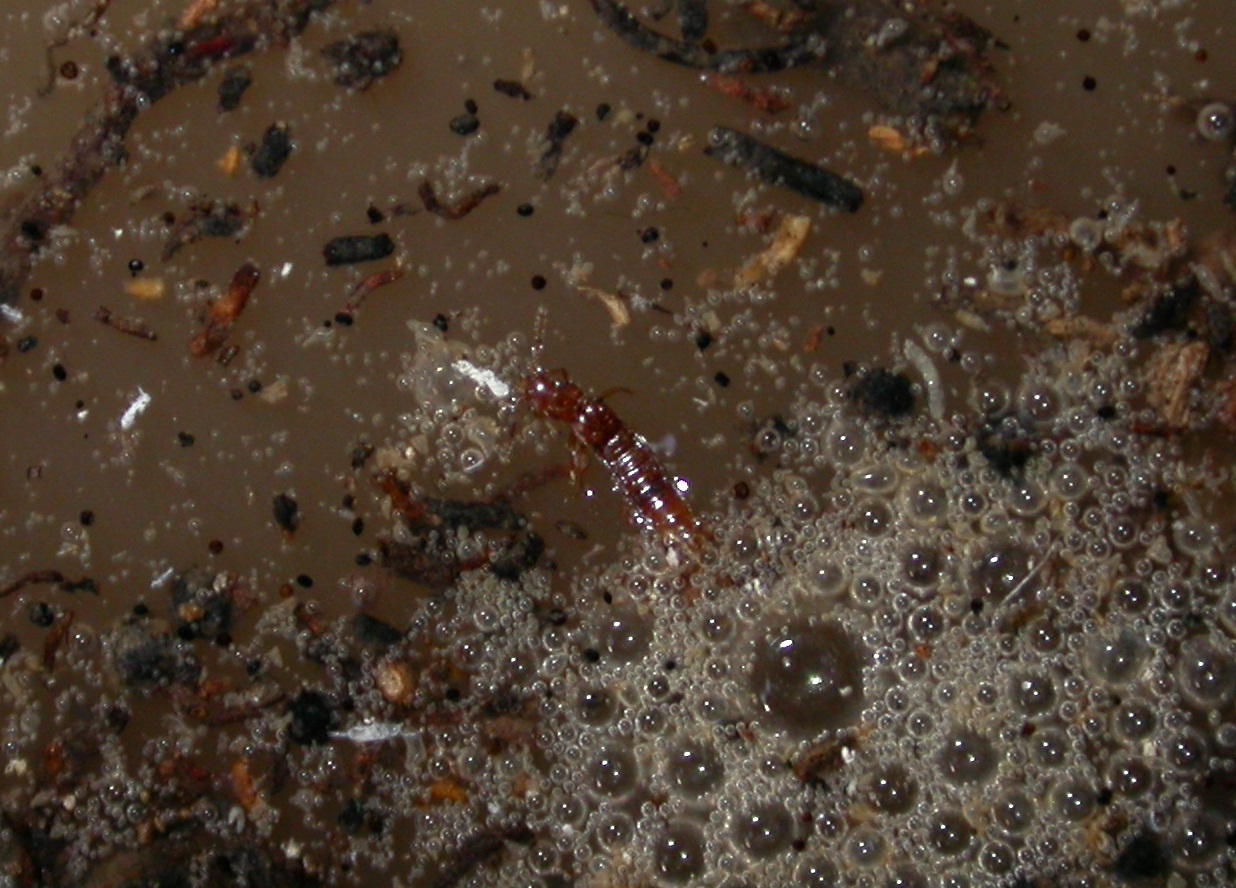 Qualche esemplare già visibile nell'acqua di lavaggio, in questo caso una Ponera: