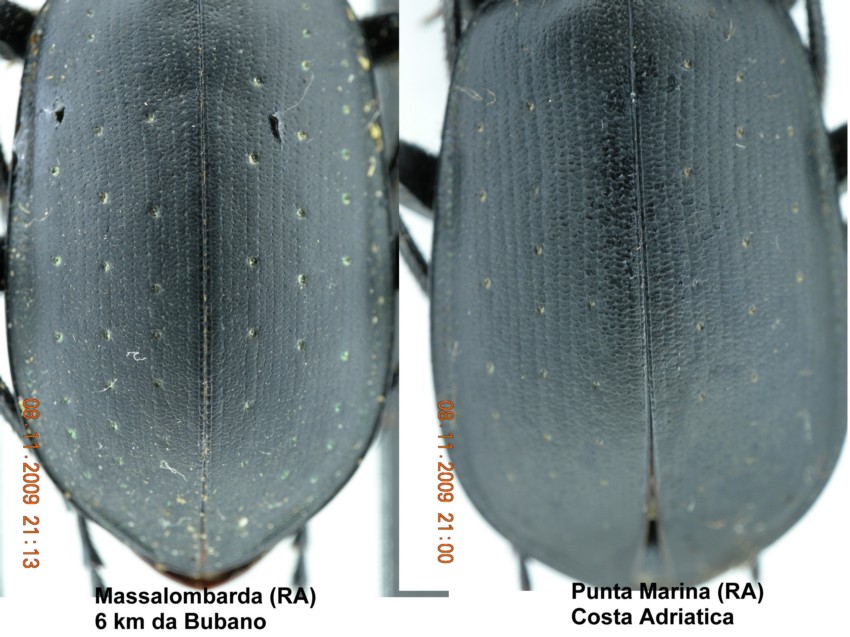 dato che credo che Giacomo si riferisse alla costa adriatica dove abita, mi permetto di rispondergli, no, la Calosoma (Compalita) maderae si trova in quasi tutta italia, e le due popolazioni, appunto quella adriatica e quella tirrenica si mescolano formando un insieme di ibridi naturali che è difficile mettere in un rango tassonomico specifico, dipende da quali caratteri uno guarda per la determinazione :D :)