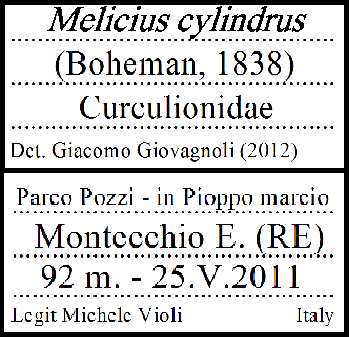 eurinomio ha scritto: mah...io non sono proprio del tutto d'accordo; se il nome del comune italiano nel quale viene raccolto l'esemplare + relativa provincia sono scritti correttamente, utilizzando san google è impossibile non capire di che località si stia parlando, anche per uno straniero.: Infatti, secondo me sapendo anche solo il comune, andando su Google Maps si riesce subito a capirne l'ambiente, posizione e altitudine. Ma chi sono io per contestare voi grandi entomologi? Quindi potrei fare (esempio): Località: Parco Pozzi, Montecchio Emilia (RE) - Italy Legit: Michele Violi Nota: Sotto masso Altitudine (se elevata o bassa): 92 mt Altro cartellino: Specie: Forficula auricularia Scopritore: (Linnaeus, 1758) Det: Michele Violi (2011) Così potrebbe andar bene? Purtroppo per le coordinate non saprei cosa fare, non ho alcun GPS (magari lo compro, quale mi consigliate di estremamente economico ma funzionale?) Comunque il cartellino con la determinazione va bene (a parte l'anno di determinazione)? O ci va un'indicazione sistematica? Comunque io sto tenendo un file Excel di tutta la mia collezione in cui riporto codice, specie, scopritore/anno, determinazione, legit, sistematica (famiglia, sottofamiglia, tribù), nota dettagliata, lunghezza. Quando invece faccio dei sistemi di trappole, faccio sempre un lavoro a parte, con carta topografica e carta geologica con sopra segnate le varie trappole, l'altitudine e qualche foto di ogni ambiente della trappola. Quando ritiro le catture segno (una volta determinati) ogni insetto nella rispettiva trappola. Ragazzi, modifico tutto, ma i puntini non me li toglie nessuno! Mi fanno sembrare il cartellino più antiquato, come se fosse stato scritto a macchina. In fondo non è che mi tolgano quel gran spazio! eurinomio ha scritto: mi sembra che ti manchi la riga per l'eventuale ssp... Semplicemente riduco la la grandezza dei caratteri se il nome è corto, altrimenti se è lungo lo scrivo in due righe. Inoltre se la sottospecie fosse quella nominale metterei "ssp", esempio: Ablattaria laevigata ssp. Ecco un esempio dei cartellini, scusate la risoluzione, ma con lo stamp e le modifiche varie su paint si perde un po' (a cui bisognerebe aggiungere le coordinate, che non saprei come fare a saperle) Riguardo al distanziatore, mi potrebeb andar bene questo di Paradox? http://www.insectnet.eu/details.php?id_prod=149 ha le tre distanze, per i miei due cartellini e l'insetto. Naturalmente lo userei solo per gli insetti su cartoncino, con quelli grandi andrei ad occhio.