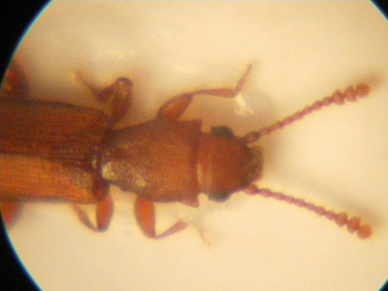 Silvanus unidentatus, di gran lunga la più comune delle nostre due specie.