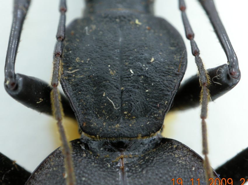 Anzitutto volevo ringraziarvi per l'attenzione che in tanti avete rivolto al mio carabide, e continuo con il fornire un paio di immagini che possono aiutare (prodotte al volo). In una si evidenziano le setole presenti sul penultimo articolo dei palpi mascellari (elemento assente in C. italicus) e nella seconda la forma del pronoto che vista la variabilità mi aveva messo nel dubbio. Leggendo di casi di ibridazione in alcuni carabi anche questa ipotesi mi è sembrata possibile. Che ne dite? La lunghezza dell'esemplare è 18 mm. Salvatore