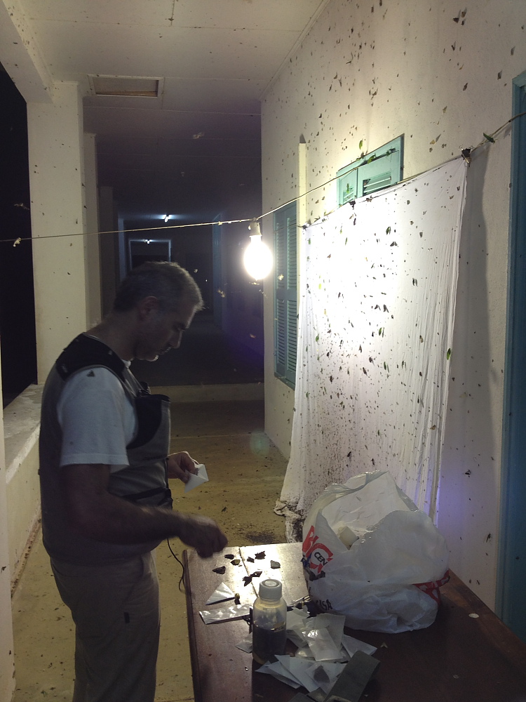 In realtà pochi Cerambici venivano direttamente sul telo illuminato, ma si fermavano nella "penombra" attorno al telo, e potevano essere ovunque, sui muri, dietro le taparelle delle finestre, sui travetti del tetto, soffitto, muretto antestante, sopra o sotto i tavolini nei corridoi, sedie, ecc.ecc. La ricerca delle bestie da qusto punto di vista era abbastanza impegnativa.