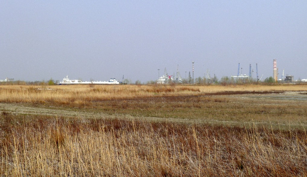 Vista Ovest - Porto di Monfalcone, in secondo piano una nave passeggeri (Carnival?) nei Cantieri Navali di Monfalcone