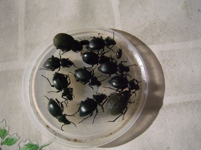 L'ultimo giorno quando sono andato a controllare le trappole a vino ho scoperchiato una trappola ad aceto per aggiungerne un po' e cosa trovo ?? il primo C. Coriaceus emgei della stagione non male 34 mm .. nella stessa zona sotto sassi alcune Amara e diversi Curculionidi e alcuni Pentatomidae di diversa specie e anche di discreta taglia ( sui 2,5 cm )