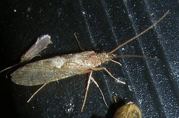 Il terzo in questa foto è un Vesperus luridus. Ma sono sicura che, se vado a cercare, una foto con tre tricotteri insieme la trovo :mrgreen:
