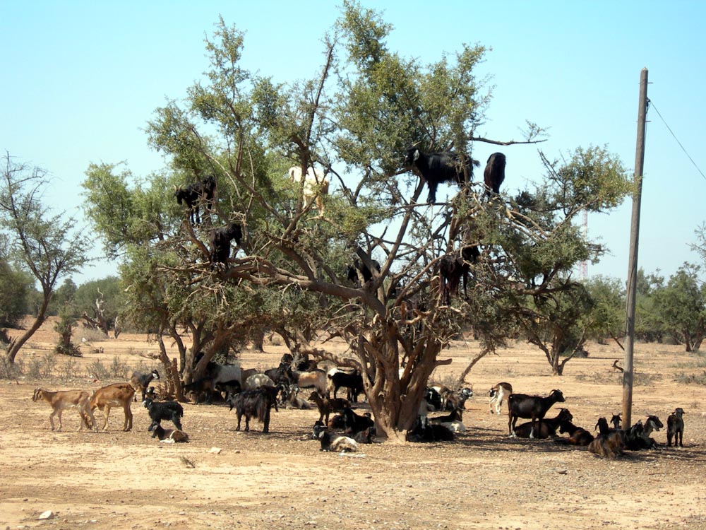 Questa è una pianta di Argàn, con 7-8 capre arrampicate sulla chioma alla ricerca di qualcosa di verde da mangiare. Siamo nella valle del Sous, dove la siccità sembra esser stata particolarmente dura.