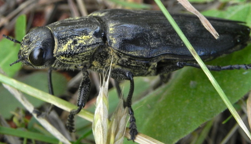 Non potrebbe comunque essere polline (a parte il fatto che si vedrebbero i granelli e sarebbero disposti diversamente sul corpo) per il semplice fatto che le Chalcophora non frequentano i fiori, anche se potrebbero, come succede anche con certi Buprestis, sporcarsi di polline frequentando l'apice dei rami dei pini, dove ci sono i coni maschili, che di polline ne fanno veramente tanto. Personalmente però non ho mai visto una Chalcophora, di qualunque specie, tra i coni di un pino, cosa che invece capita con vari Buprestis. Non sono neanche sicuro che ci vadano, se non occasionalmente. Comunque, quelle che mi sono sfarfallate in allevamento (Chalcophora maura, ma non fa una grossa differenza) erano già dotate del rivestimento pruinoso fin da quando uscivano dal legno.