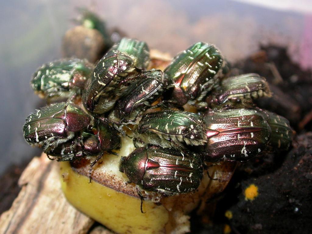 Aggiungo qualche foto degli esemplari di C. carthami in cattività: questa foto potrebbe essere una ottima pubblicità per una marca di banane (da come si accalcano deve essere piuttosto buona…. :mrgreen: ):