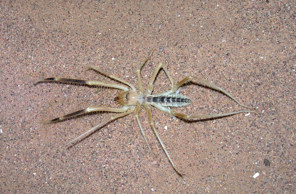 Ovviamente abbiamo fotografato e campionato anche materiale di altri ordini. Questo bellissimo scorpione sembrava fatto di giada o di un'altra pietra dura traslucida. Questo solifugo misurava circa 3-4 cm (escludendo zampe e palpi). ... continua...  Ciao Piero