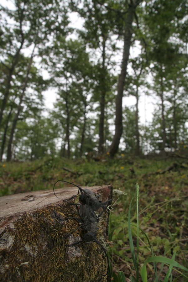 Comuni alle basi dei tronchi gli splendidi benchè comuni Morimus asper: