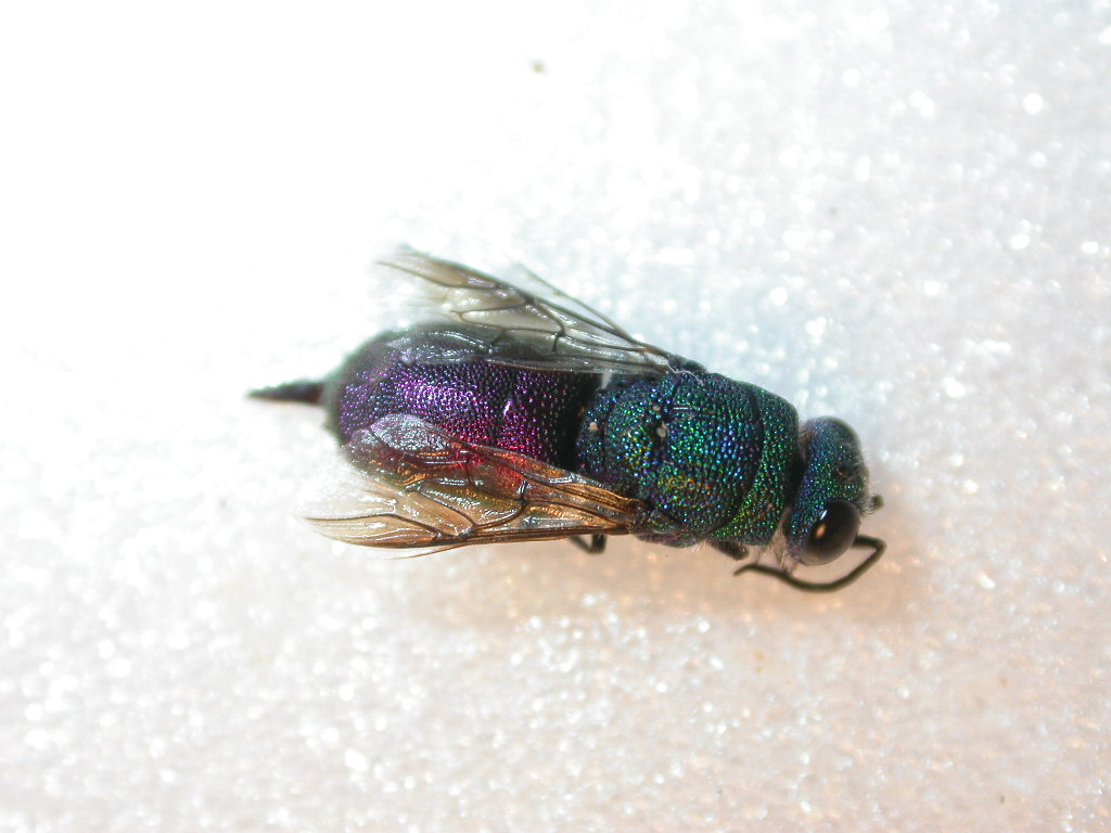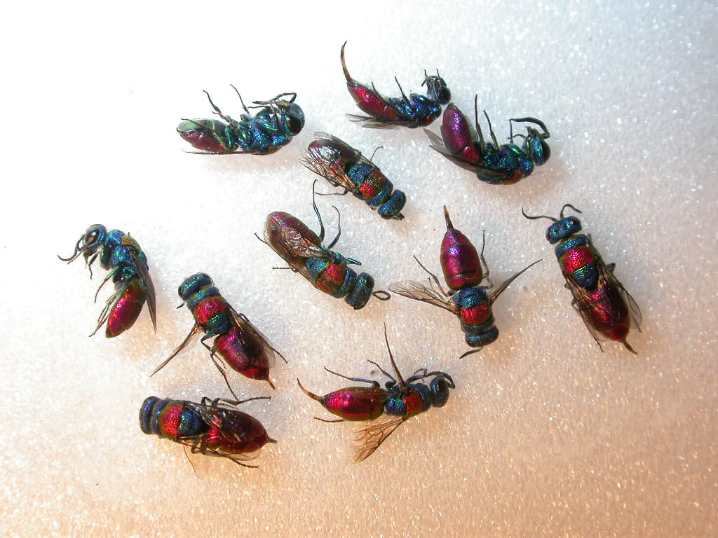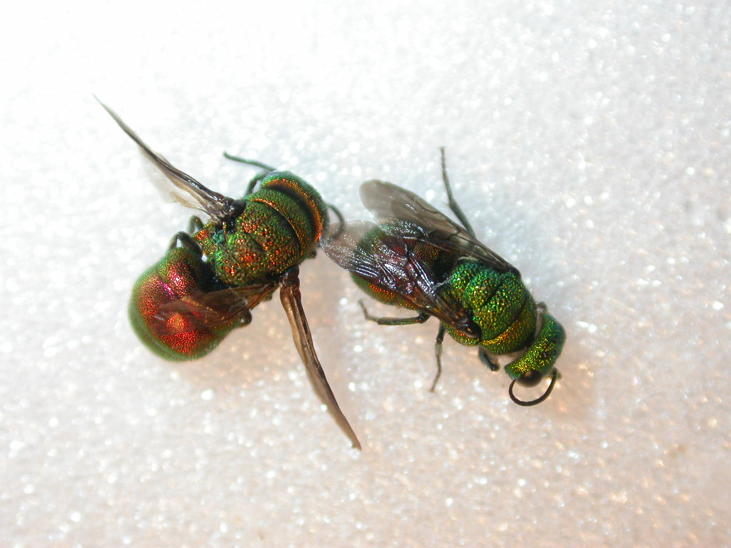 quello di dx direi che è un'Holopyga sardoa... e quello di sx, dalla forma del pronoto, sicuramente no, potrebbe essere un Hedychrum (in tal caso H. rufipes) ma da quel (poco :sick: ) che si vede della forma dell'addome propenderei per una Chrysis, e in tal caso provo a :gun: Chrysis berlandi reductidentata