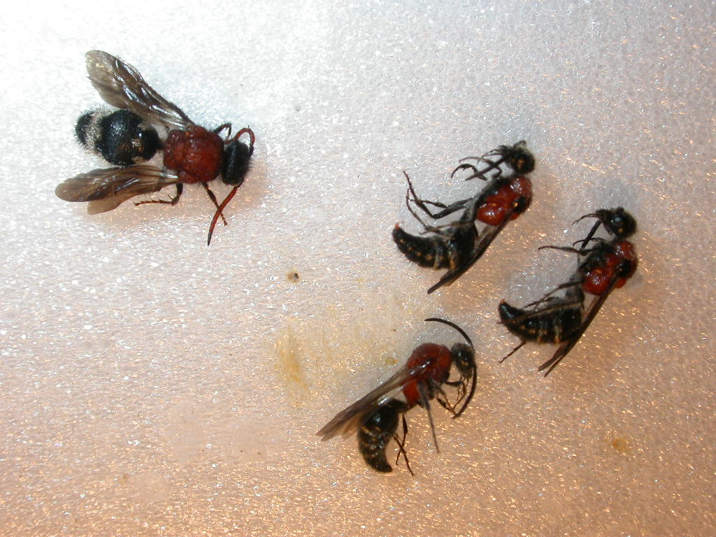 P.s. I maschi di mutillide sono di tre specie diverse, non due come avevo scritto.