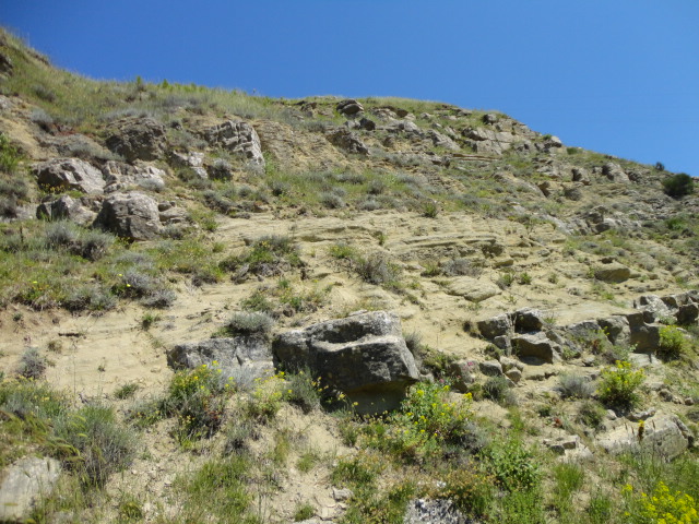 Particolare del pendio delle Calcareniti di Floresta che casteggiano la S.P. dopo Floresta verso il bivio della dorsale dei Nebrodi (area Nebrodense)