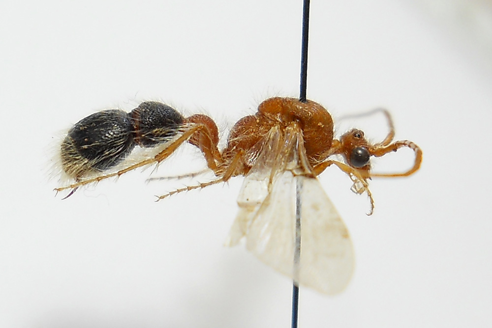 Dovrebbe essere un maschio di Apterogyninae, possibile parassitoide di solifugi.
